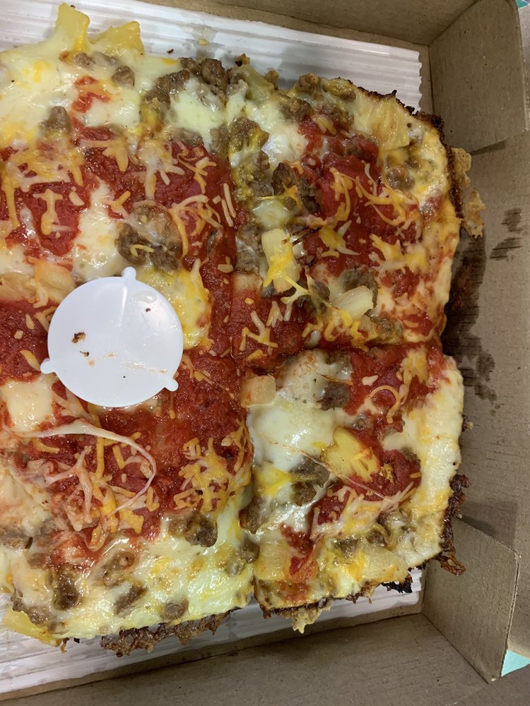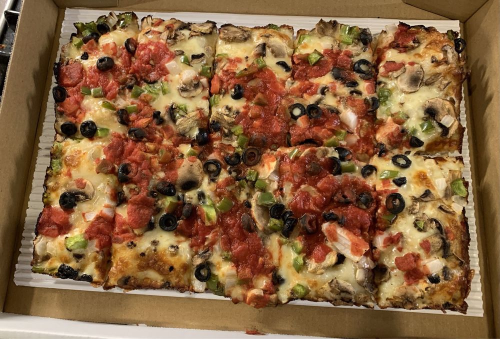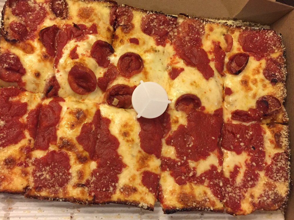 Small square, round or cauliflower round only. Pizzas are not cut to prevent cross contamination